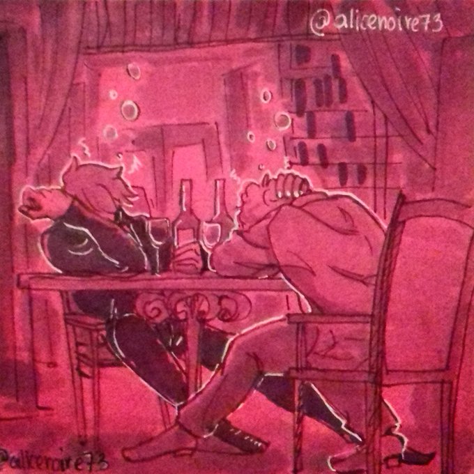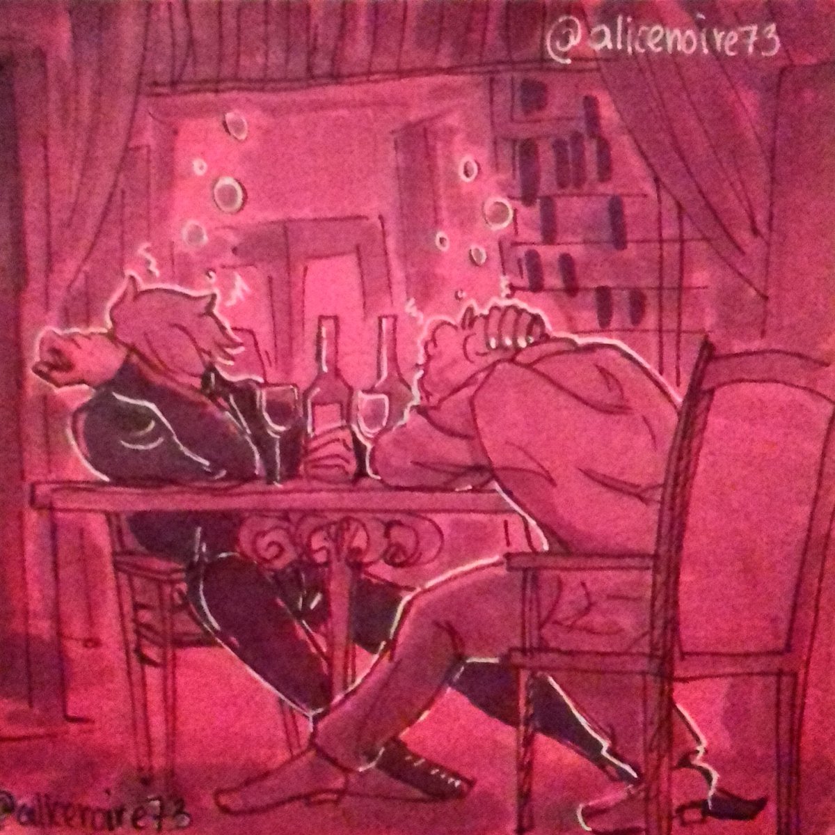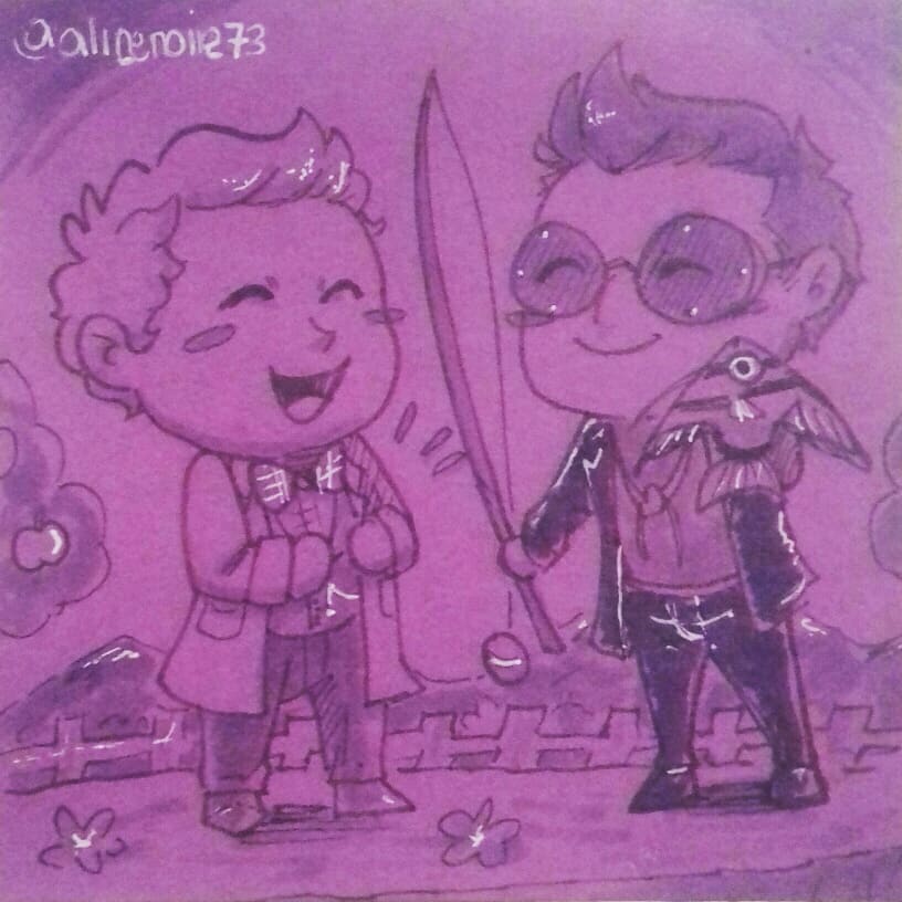 Day 24 - Dizzy. Took me way too long to decide on this one. Of course I ended up doodling these two dorks completely sloshed. #goodomens #goodomensfanart #inktober #inktober2019 #inktoberday24 #ineffablehusbands #Noire73