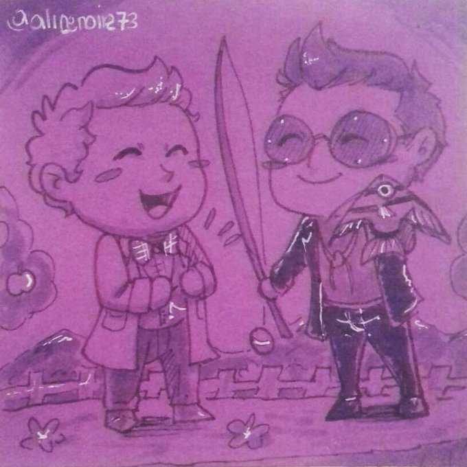 Day 20 - Tread #inktober and Apocalypse #ineffableinktober. Not quite satisfied with this one but liked it either way. #inktober #inktoberday20 #inktober2019 #goodomens #goodomensfanart #Crowley #Aziraphale #adam #adamyoung #Noire73