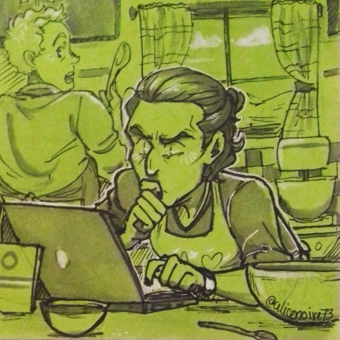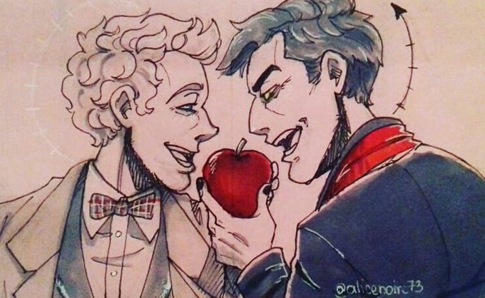 Day 25 - Tasty. Thanks to @GreaterTaco for giving me this idea. They are trying to make something. Whatever they are making will probably ended being perfect either way. #inktober #inktober2019 #inktoberday25 #goodomens #goodomensfanart #ineffablehusbands #Noire73