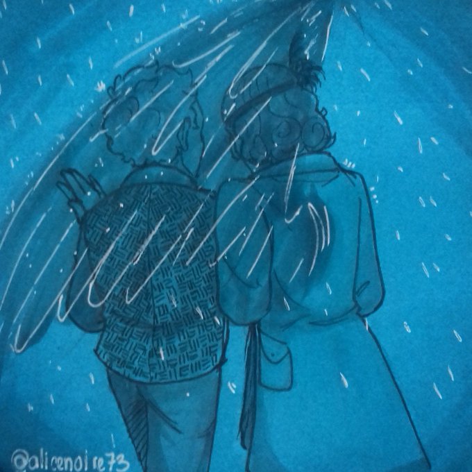 Day 27 - Coat #inktober and Wings #ineffableinktober. Aziraphale's coat won't let his partner get cold and Crowley's wing won't let them get set under the rain. #inktoberday27 #inktober2019 #goodomens #goodomensfanart #ineffablehusbands #Noire73