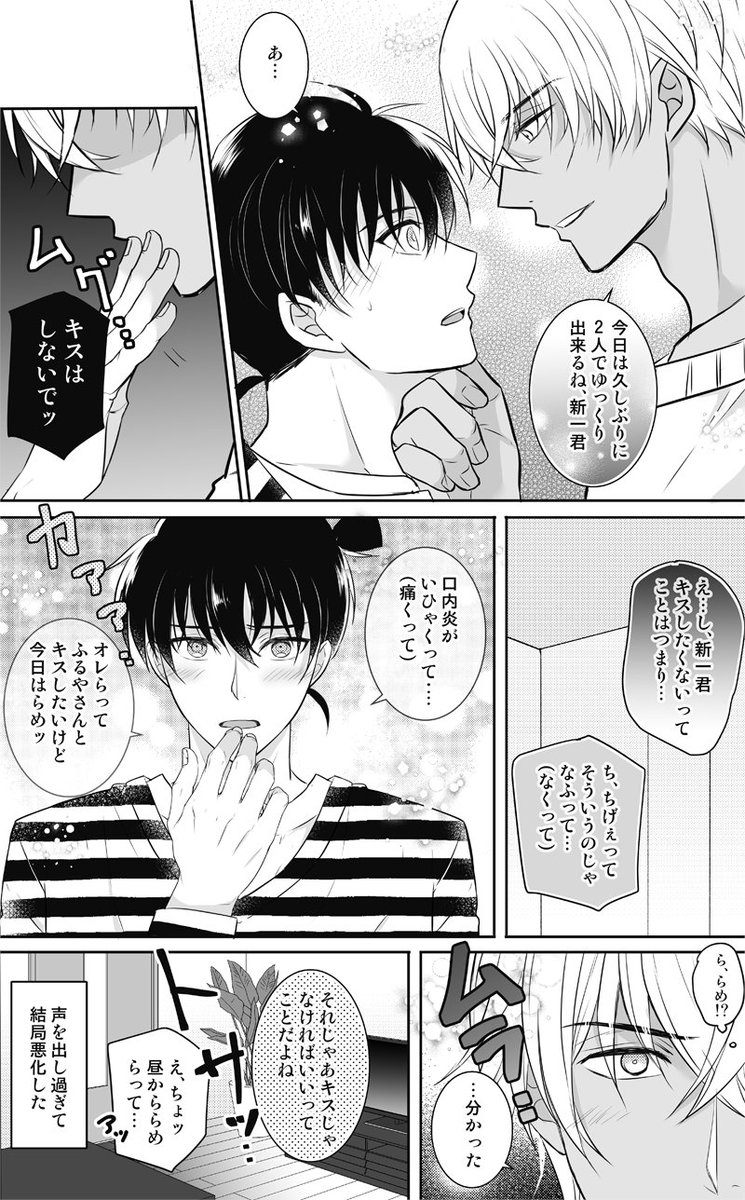 【降新】口内炎こな君は可愛かったけど、口内炎のしんち君は絶対えろいと思うんだ…🥹💖(キスを断られた降さんはこの世の終わりみたいな顔してるよ)