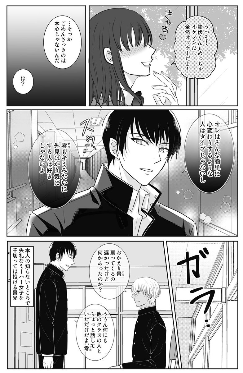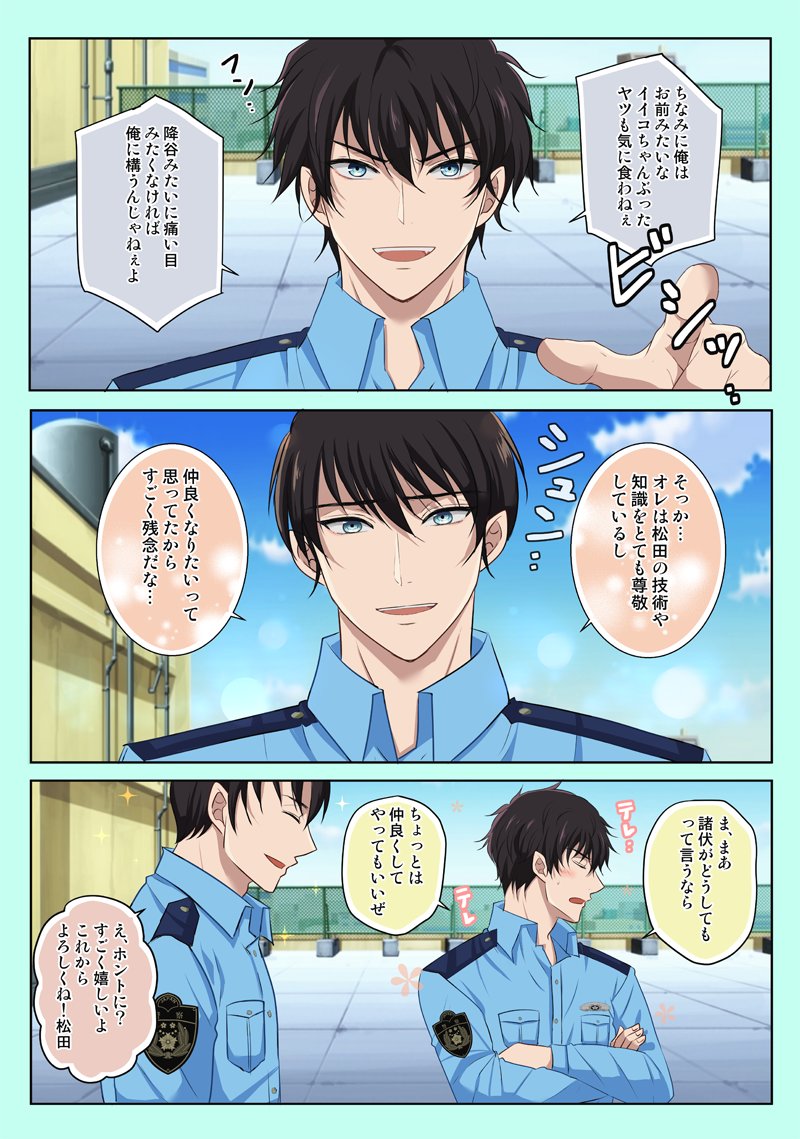 幼馴染ヒロ+ゼロ。普段はニコニコ穏やかなヒロさんが、降さん絡みでは容赦ないの萌えるなと思って描きました☺️ ※モブ注意