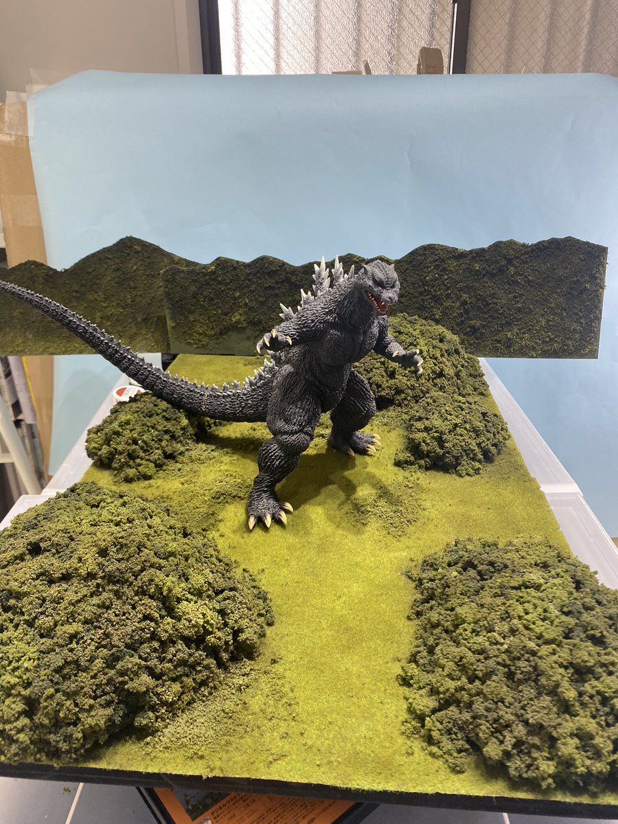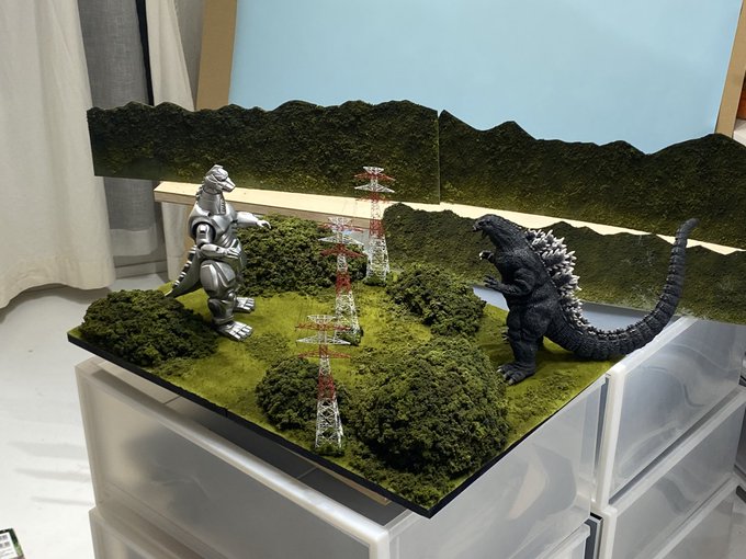 キットの制作含めて、昨年の11月から作っていたゴジラVSメカゴジラ・鈴鹿山中のディオラマを完成させました。今年は公開30周年❗️🎉下にディオラマの全景と、両怪獣の特撮ビジュアル作成してぶら下げますのでぜひ見て欲しいです。 twitter.com/alicetoda/stat…