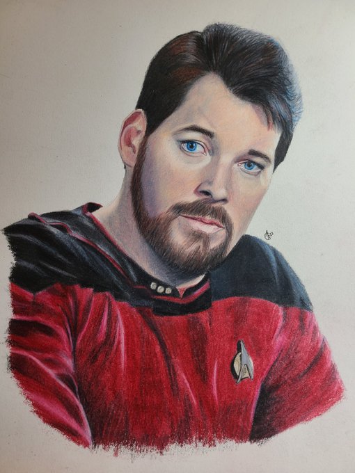 9 40 Finished my colored pencil portrait of Cmdr William Riker from Star Trek TNG #startrek #fanart #coloredpencil #ArtistOnTwitter #startrektng 22/08/24 06:22