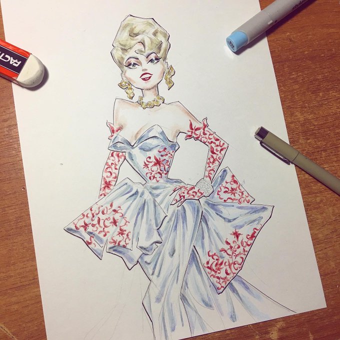 “50’s couture”🌹 (Watercolor/Marker/ink sketch for inktober 2020) #inktober2020 #periodcostume #art #drawing #illustration #sketch #comics #marker #painting #inktober #traditionalart #fashion #watercolor #aquarelle #50s #couture