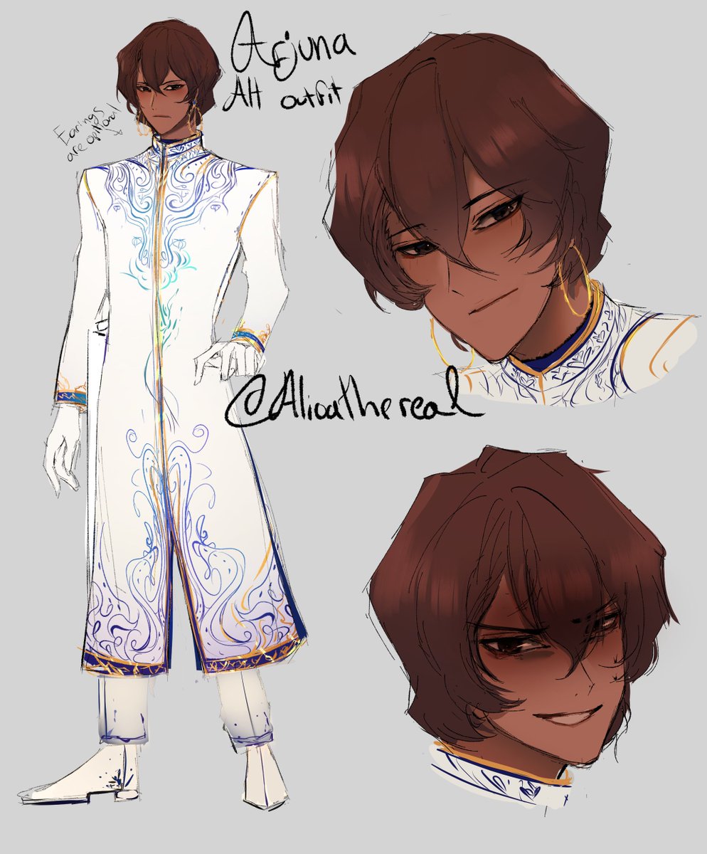 ahem him yeah him <333 ANYWAYS THIS WAS SUPPOSED TO BE FOR WHITE DAY SO PRETEND IT WAS - i adjusted arjuna's suit outfit since i added a coat and white on white looked on so i colored his scarf LOL but anyways #FGO#アルジュナ
