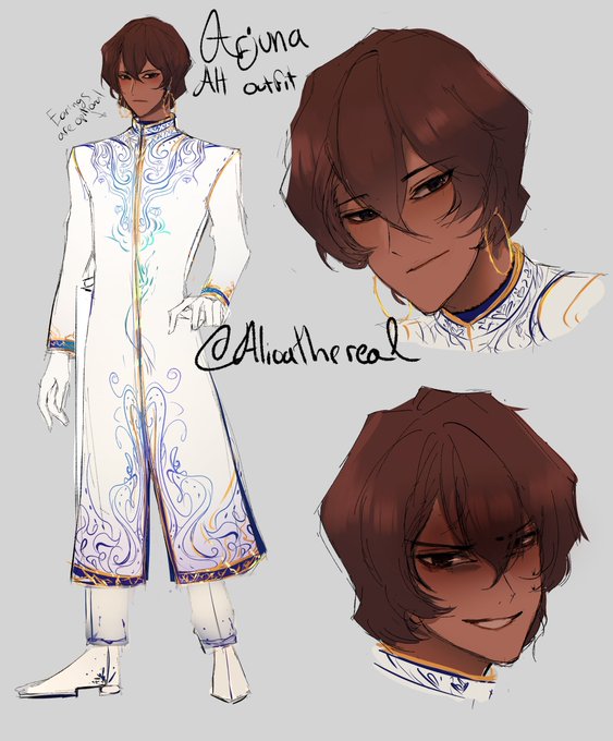 I DECIDED TO DO KEEP ON THIS DESIGN IM HAPPY Arjuna was so fun to do an alt design for him & for Misae to show the difference in both stories imma post soon but !! him. though i shouldve made his hair darker but im lazy to go in and edit </3 #FGO#FateGO#アルジュナ