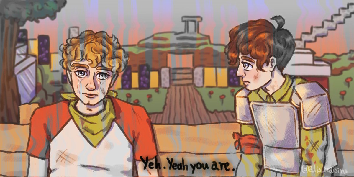 // slight blood on the 2nd pic The last sunset. #dsmpfanart #tommyinnitfanart #tubbofanart Rts appreciated 🍇