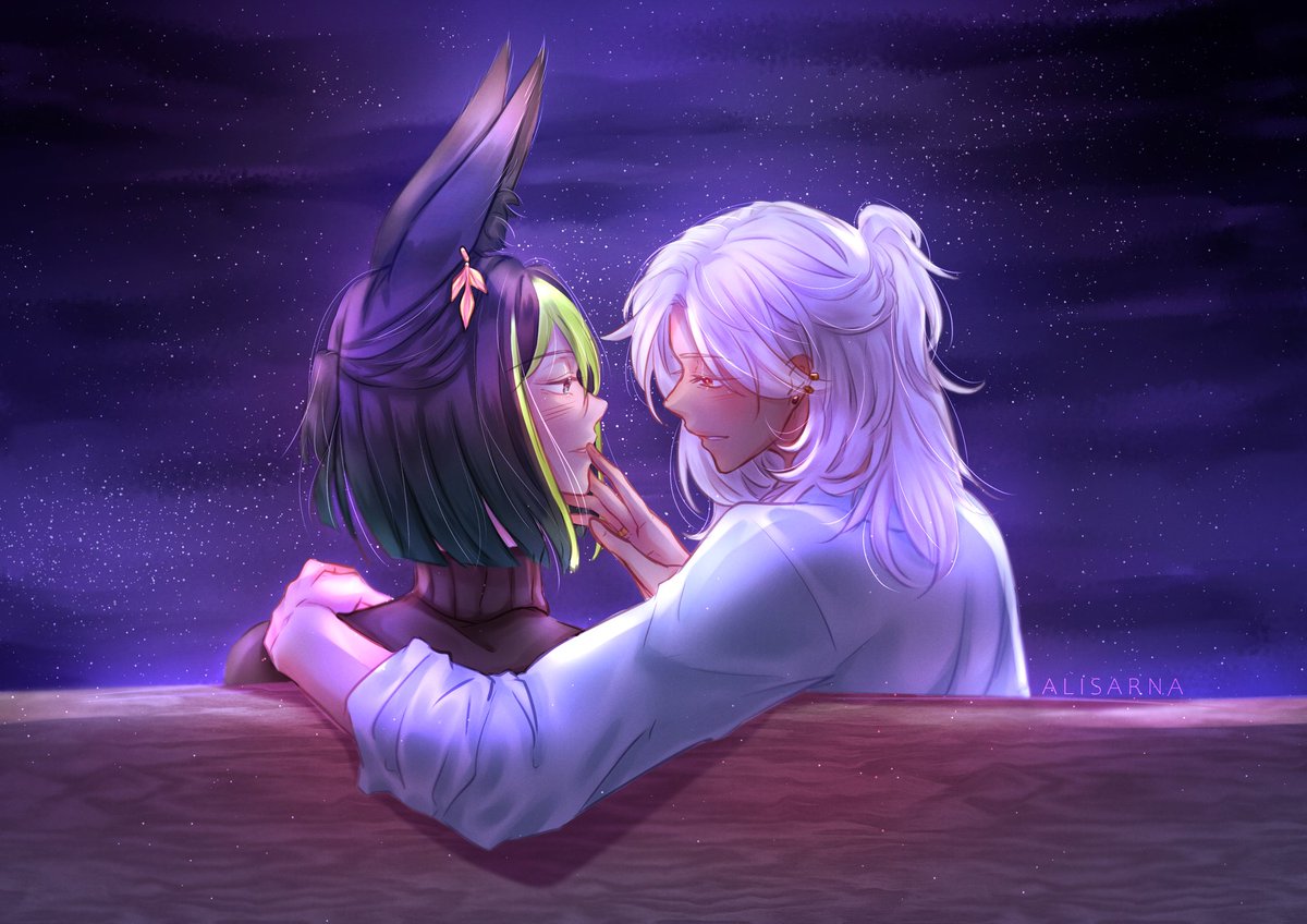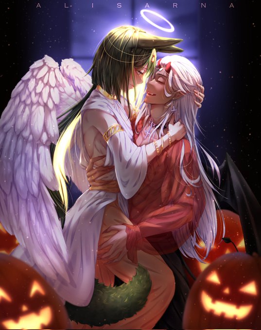 Angel and Demon #cynonari ⚡🌿 Happy Halloween!!(a little early but still~ 🎃) #genshinimpact #halloween #cyno #tighnari #fanart #art