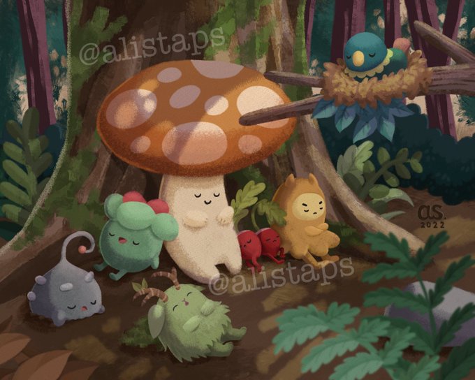 Ooblets taking a nap! 🌺🍄💕 I painted this a little while ago. お昼寝中のOobletsです🌺🍄💕 数ヶ月前に描きました。 #ooblets #fanart #CLIPSTUDIOPAINT #絵描きさんと繋がりたい