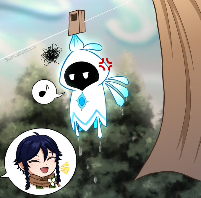 There was a time where a little wind elf was hung using a clothespin like every time he got drenched in water. 😂 #venti #namelessbard #genshinimpact #genshin #genshinimpactfanart #原神