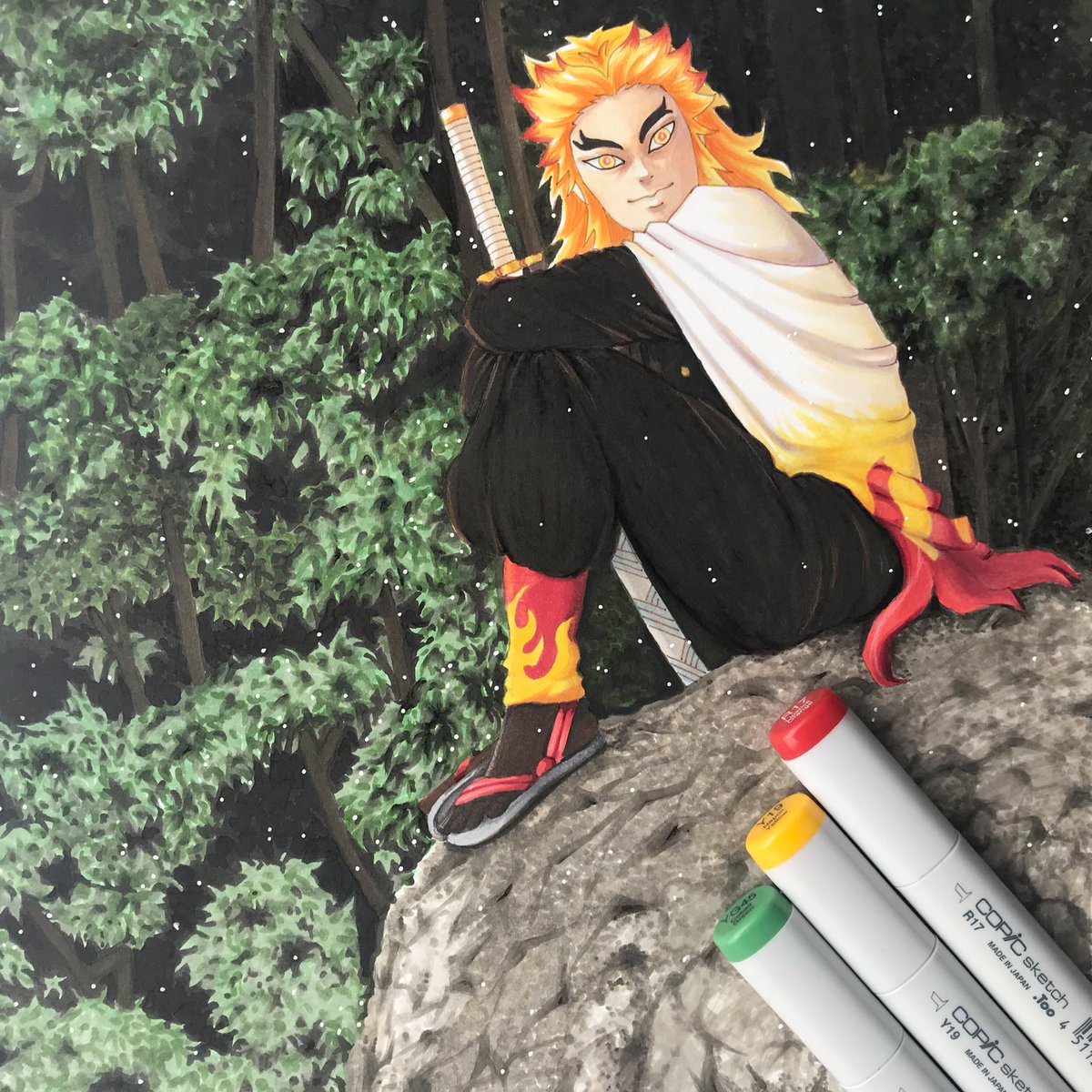 Rengoku Kyoujurou from Demon Slayer in a quiet mood 🌲 #DemonSlayer #DemonSlayerMovie #kimetsunoyaiba #kimetsunoyaibafanart #rengokukyojuro #kny #peaceful @COPIC_Official