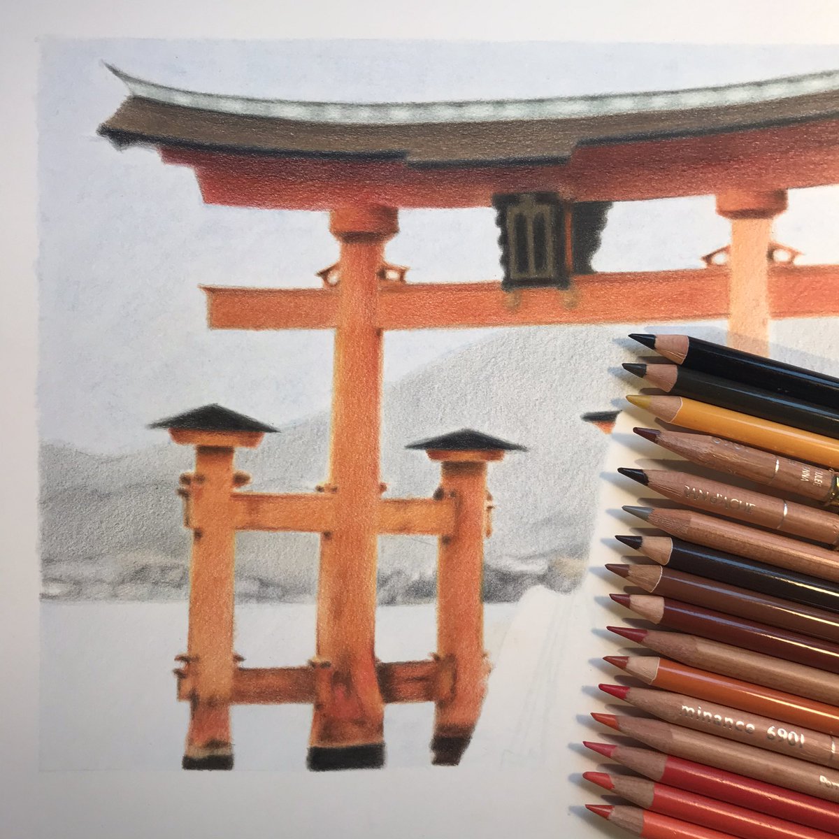 WIP Miyajima Itsukushima torii . 🔹🔸🔹🔸🔹🔸🔹🔸 #coloredpencils #art #drawing #dessin #artwork #illustration #色鉛筆画 #色鉛筆アーテイスト #色鉛筆画家 #イラスト #coloredpencilartist #coloredpencilsdrawing #coloredpencilonpaper #coloredpencil #miyajima #torii #japan