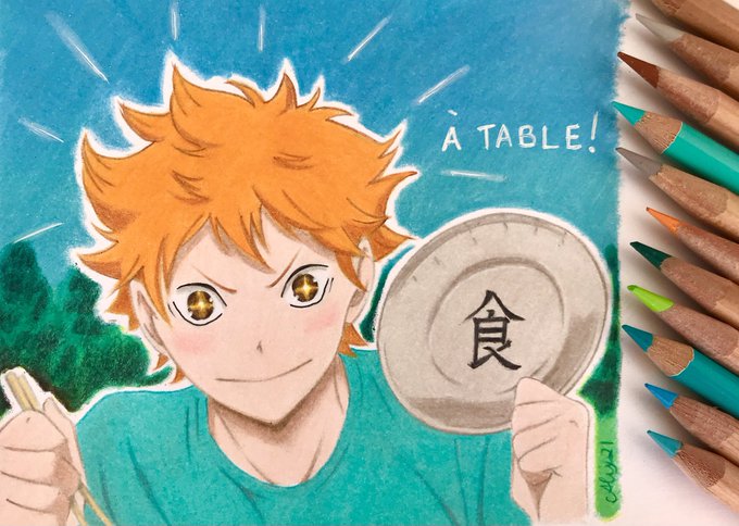 New drawing ! Hinata Shoyo from Haikyuu. À table means « let’s eat! ». #haikyuufanart #hinatashoyo #haikyuuart #ColoredPencil #Karasuno #manga #hinatashouyou #ハイキュー #ハイキューイラスト #日向翔陽 #色鉛筆画