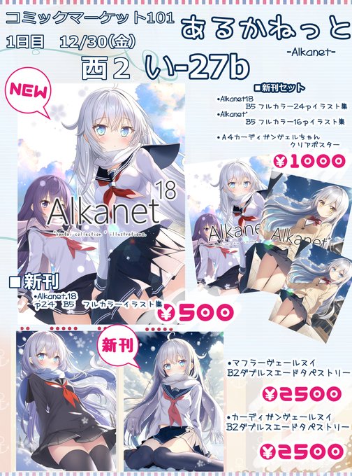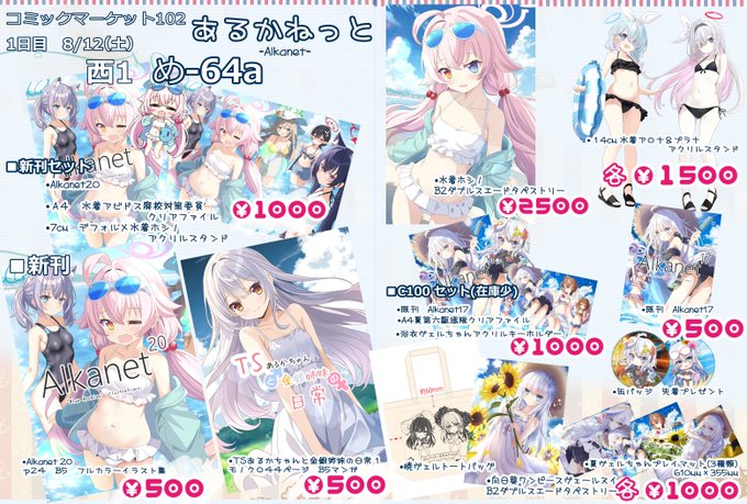 コミケ102、1日目(土曜日)西 め-64a「あるかねっと」のお品書きです!ブルーアーカイブの24ページフルカラーイラスト集と44ページオリジナルTS漫画を頒布いたします。よろしくお願いいたします! 通販もしていますので会場に来られない方はこちらからどうぞ! melonbooks.co.jp/detail/detail.… #C102… twitter.com/i/web/status/1…