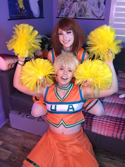 Bakugou and Uraraka Cheerleaders! @LittleCheybaby #bnha #MyHeroAcademia #bakugoucosplay #urarakacosplay