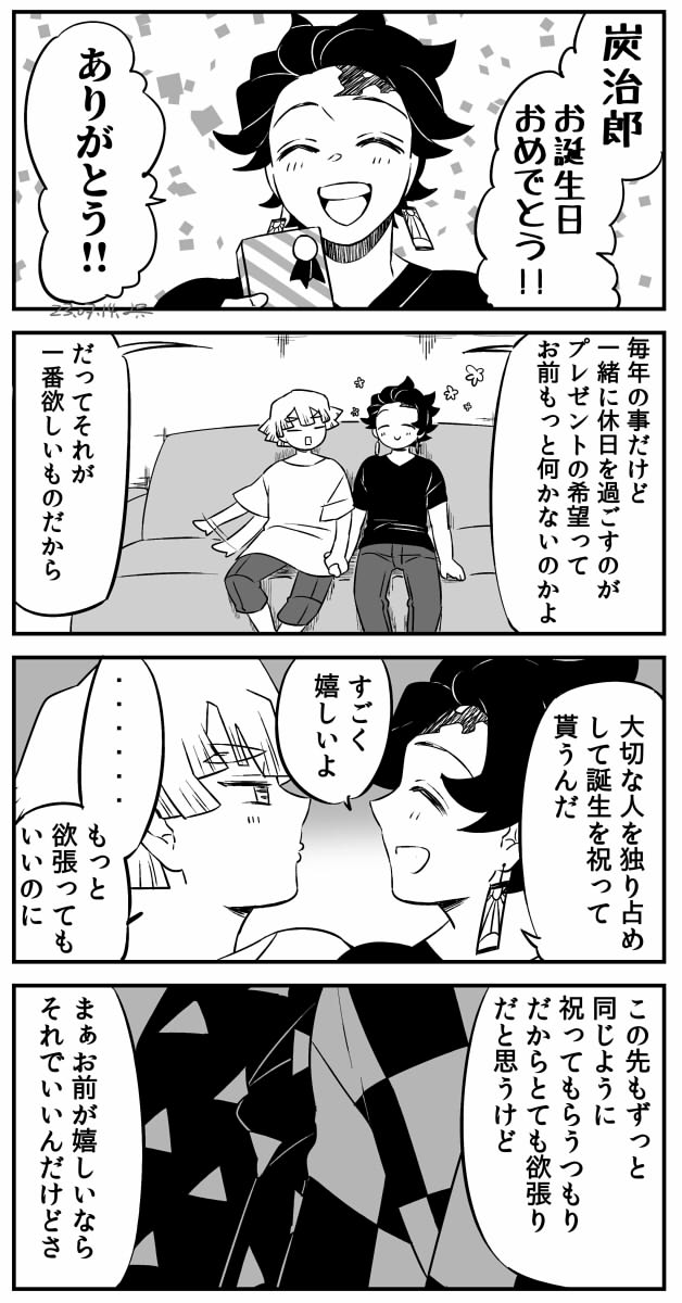 27 91 これまでの100年もこれからの100年もその先の100年も祝ってもらう 炭善ちゃんで祝うおたおめ長男🎉 転生現パロ風味原作軸も有り 23/07/15 00:29