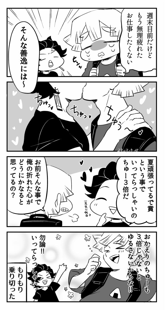 22 129 いよいよ週末の現パロ炭善ちゃんお疲れ様お帰りのちゅー3倍サービスデー 23/07/29 22:29
