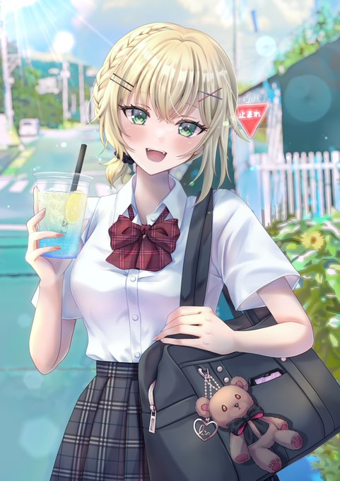 「今日も暑いね」 夏制服バージョンのあちゃん🧸♔ #963art #胡桃のあ twitter.com/i/web/status/1…