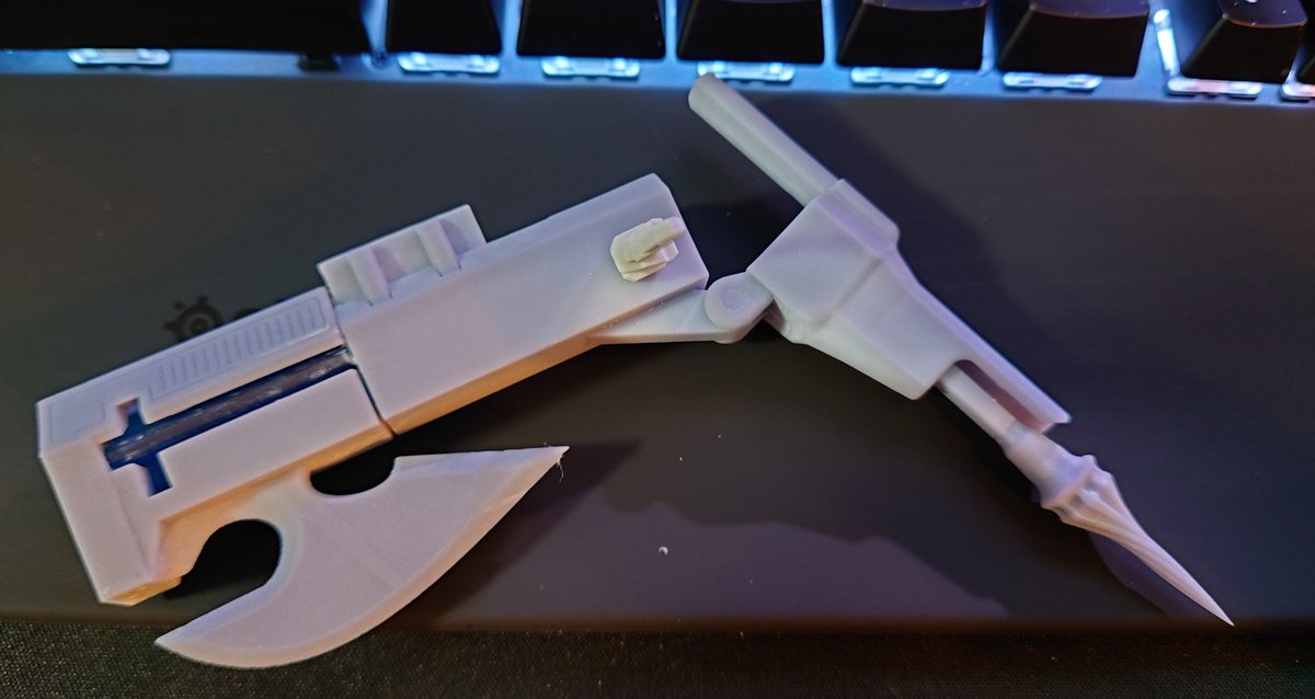 1stトライ!! 中通してる青透明パーツはデータをもう少しオフセットしたほうが組み良さそう🤔 #メガミデバイス #3DPrinting