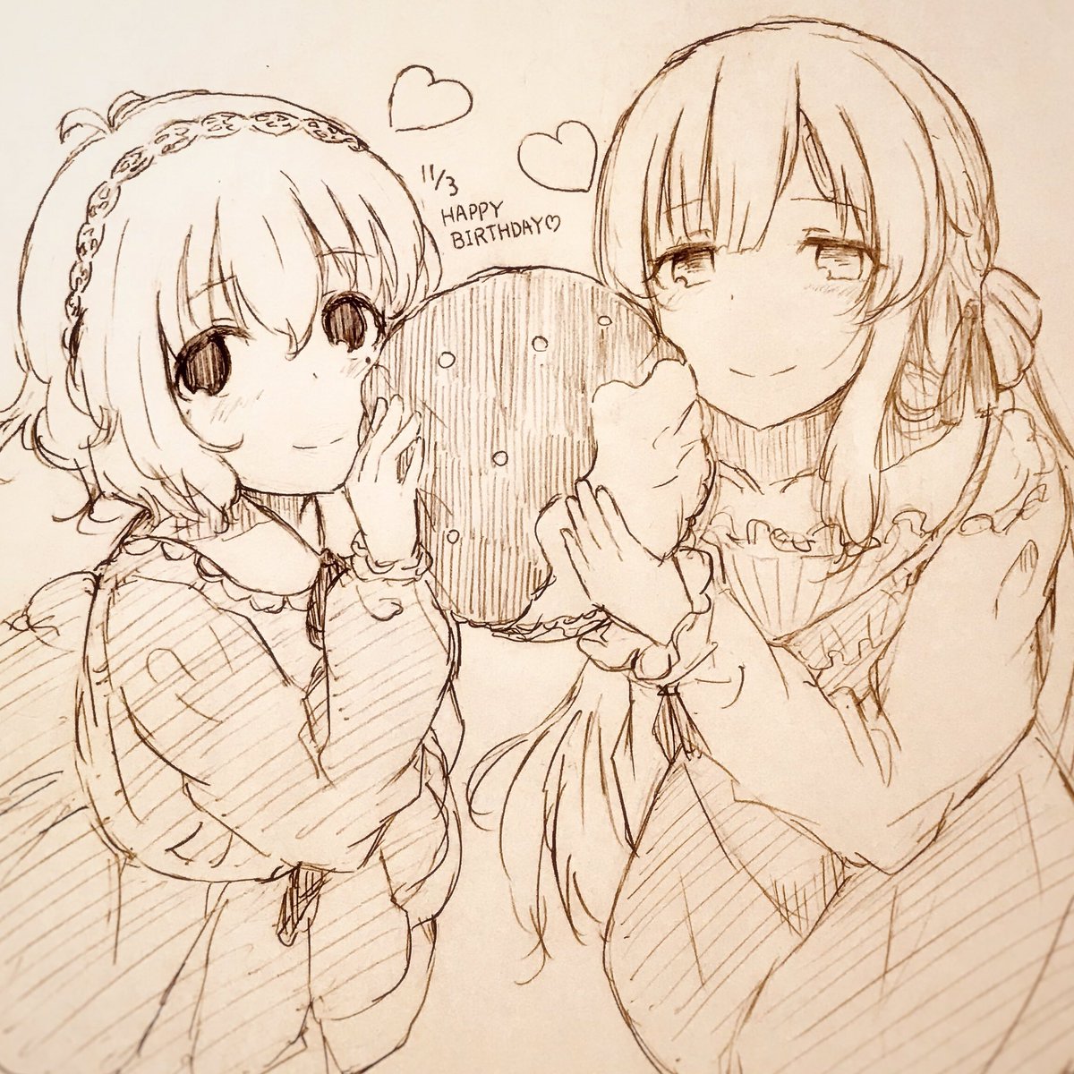 もすぐらすさん(@mssglss)に描いていただいた由愛ちゃん誕生日記念イラスト 今日誕生日の霧子と並んでいるので再掲です♪ ポプマスくんが終了してしまって今のところ公式で共演できるチャンスはないけど、選挙でボイス実装させて実現のチャンスを広げたい! ゆめきりこ最高( ・∀・)