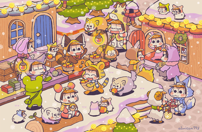 イベント当日になっちゃいましたが新刊サンプルです!けもまつ農場のセルフコミカライズまとめ本を作りました🐯🌳(クリスマスの描き下ろしも収録) だけもっと開催期間中のBOOTH注文にはおまけ特典のボトルケースが付きます!🌼 #今日だけもっとあつまって pixiv.net/artworks/94838…