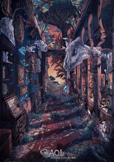 6 22 #冬の創作クラスタフォロー祭り #イラスト 「取り壊された博物館」 今年はいっぱい博物館を描きました。もうすぐ完成(絵本です) 22/12/26 17:59