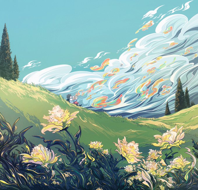 「風のいろ」🍃☁️🫧 #イラスト #創作 #illustration #イラスト好きな人と繋がりたい