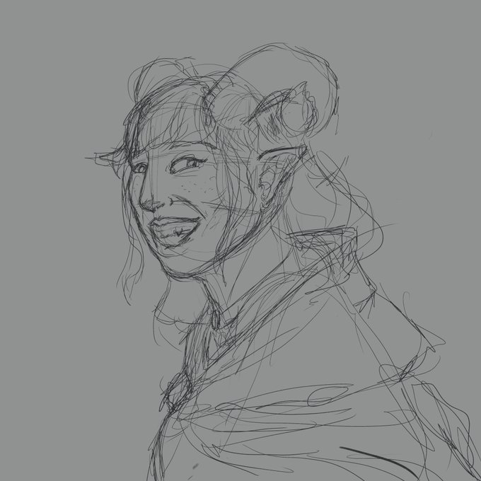 Day 3: Jovial! #28portraitchallenge Didn't have a lot of time today to work on today's portrait, but I was able to get this sketch out at least! Enjoy a little blue tiefling! (Might work on it later!) #criticalrolefanart #portrait #sketch #digitalart #art #jesterlavorre
