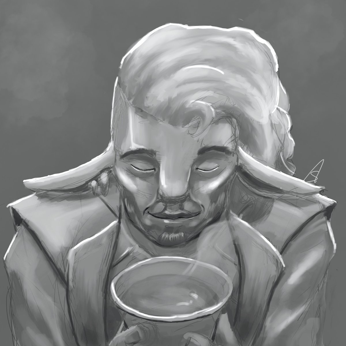 Day 7: Wise #28portraitchallenge Happy Sunday everyone! Here's today's portrait of @executivegoth's character Caduceus Clay enjoy a nice tea! Enjoy! #criticalrolefanart #CriticalRole #dndartists #ArtistOnTwitter #digitalart #portraits