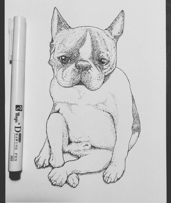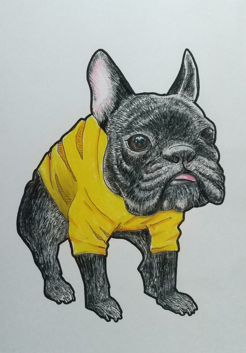 作品名:エリザベスカラーフレンチブルドッグ メディウム:ポスターカラー、油性色鉛筆 作成年:2023 #frenchbulldog #イラスト #フレンチブルドッグ #drawing #illustration