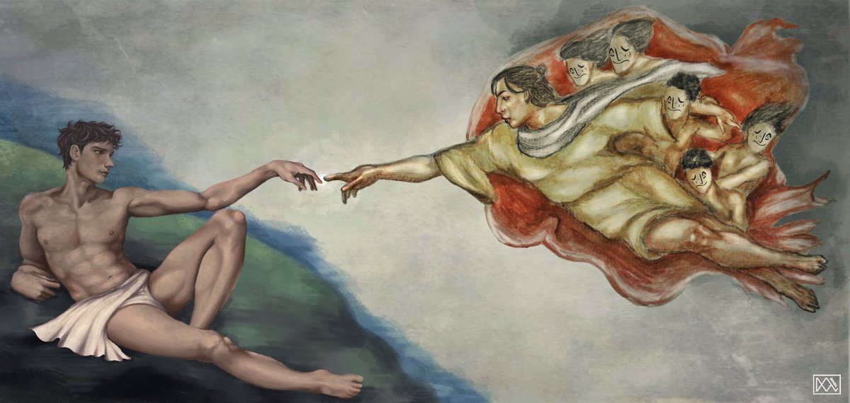 A remake of Michaelangelo’s masterpiece, the ‘Creation of Adam’ //An Art Collaboration with @pandeskaa #zonakaryaid #artidn #artistsontwitter #artistsofindonesia
