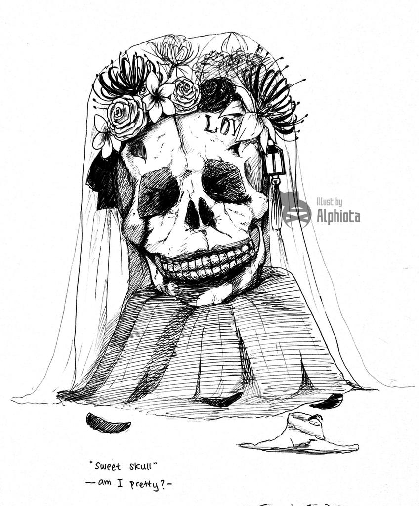 Day 1 - Sweet Skull "Being a sweet bride is my dream, am I look sweet enough?" #inktober2021 #inktober2021day1 #creepycutober #inktober