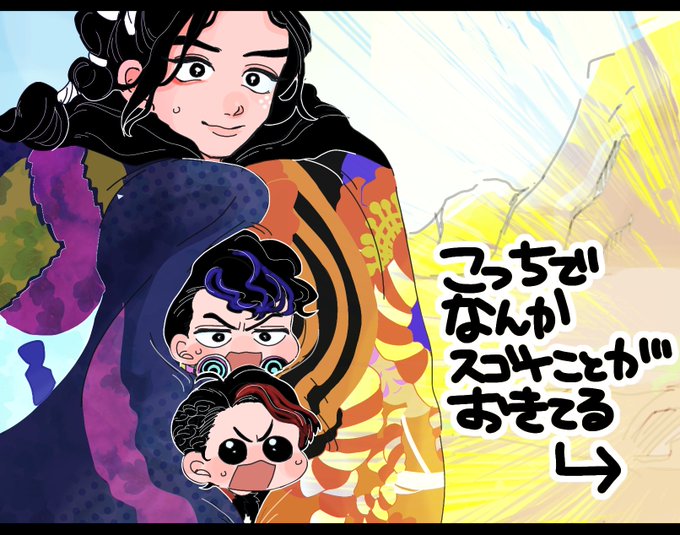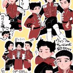 かぐらぎ殿がデカすぎて最高なので爆風とか爆発時に着物の袖に隠れるやんまくんとぎらくんかきました(DBの模写)