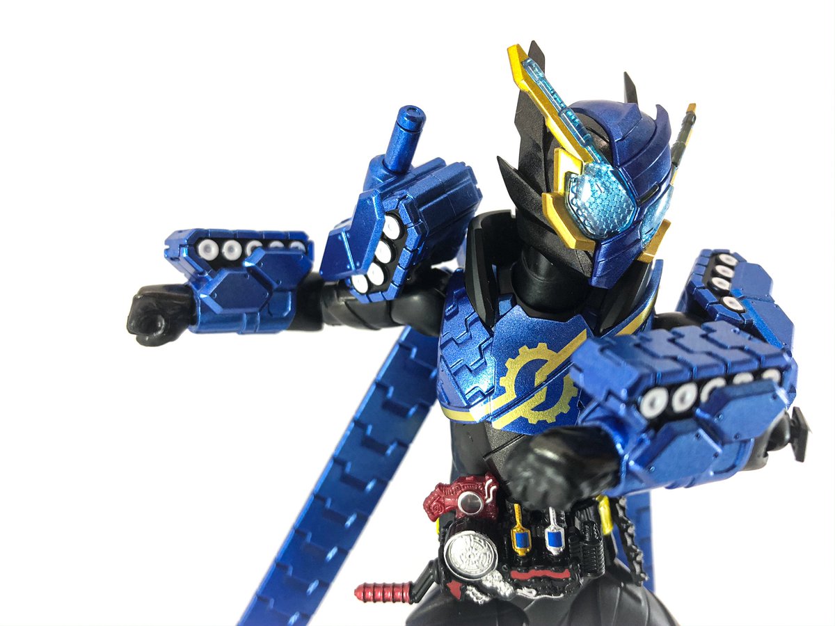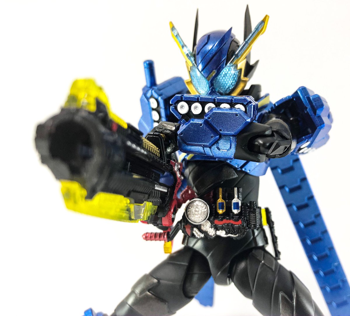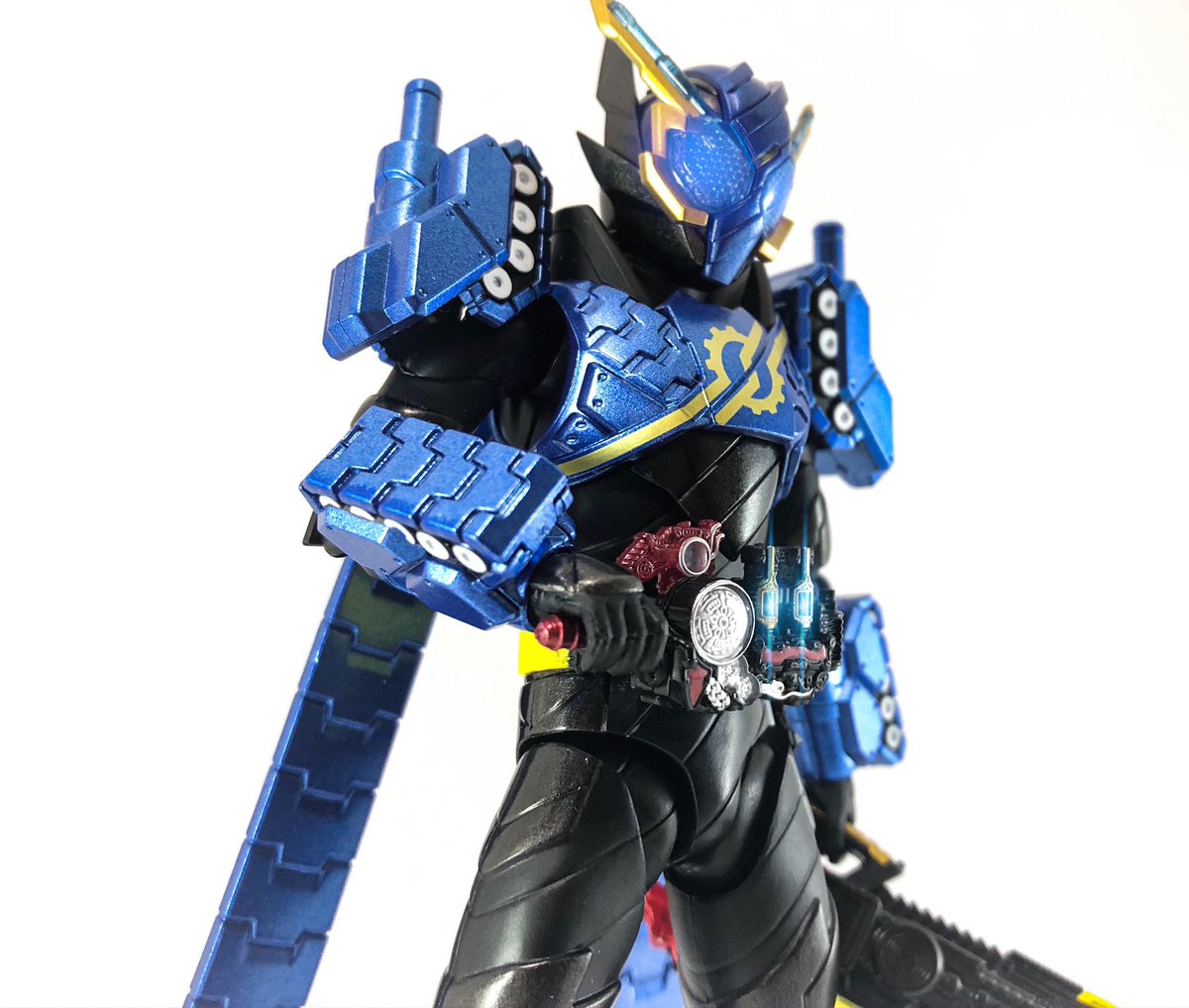 #フィギュアーツ写真部 #ビルドタンクタンクフォーム #チンパンアーツ写真部 ハザードトリガーを装着したビルドドライバーにフルフルラビットタンクボトルを装填することで変身する。 ブルータンクローラーにより戦車のような形態になることができる。