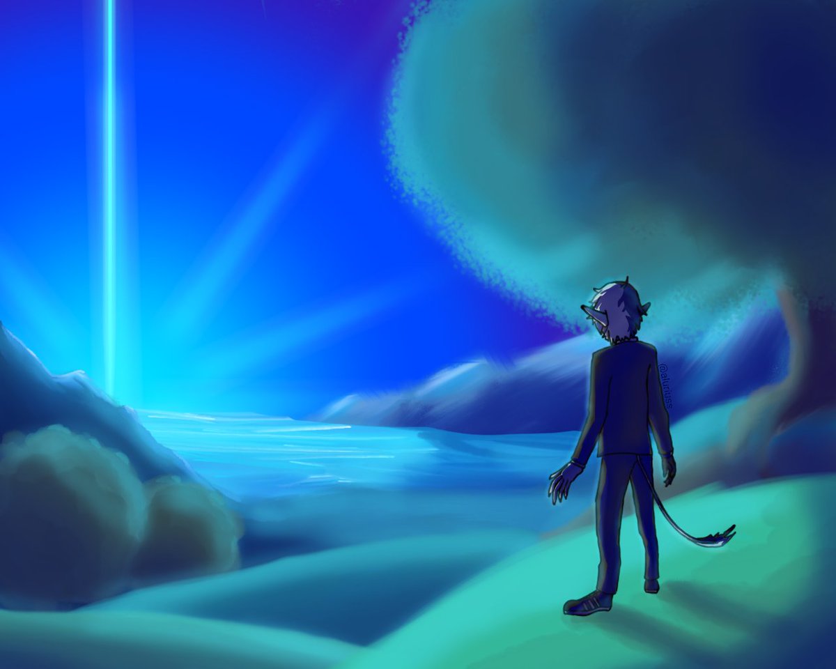 c!Ranboo goes exploring on the dsmp and finds a beacon in the distance. (I'm just playing with colors for this one >:D) #ranboofanart #mcytfanart