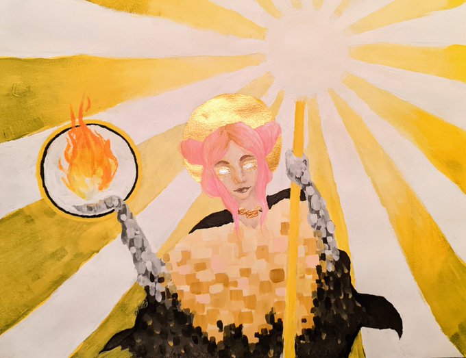 #nihachufanart #nikifanart @Saturn_Digital_ I was super inspired by the #SaturnDSMPGods tag! I present Nihachu, Goddess of Retribution. (Based of Nemesis) The light of truth shines on the lies before her, while her divine flame shall judge her foes. (Acrylic paint)