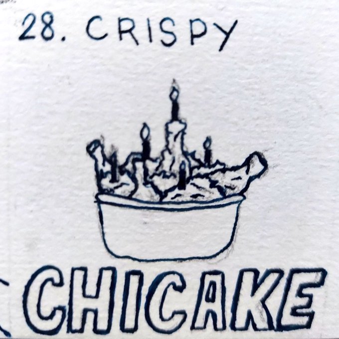 Inktober 2021 Day 28: CRISPY gusto ko sana yung "kasing lutong ng kropek" ni stell, pero ang hirap madrawing eh 😅 so, yung chicake na lang! Tutal ang susunod na may birthday si Ken 😎 #inktober #crispy BAZINGA MV BUKAS NA @SB19Official #SB19BazingaMVTeaser #BazingabySB19