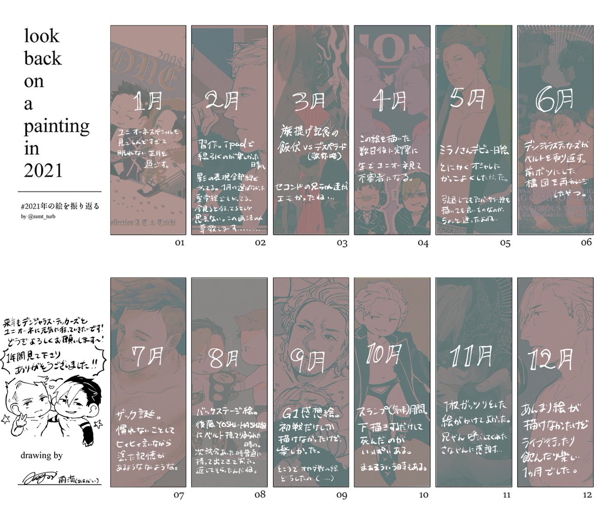 #2021年の絵を振り返る 今日明日何か描くかもしれないし、描かないかもしれないので今日まとめちゃいました。見て下さった方ありがとうございました〜!!来年も楽しく描きたいね🥳