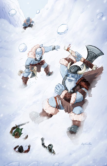 Frost Giants Some gremlins rolled a really reaaallly good persuasion check on me to post my art and now I'm obligated to share. This piece was part of my thesis that had me in a chokehold all semester💀 #illustration #fantasyart #DnD #dndart