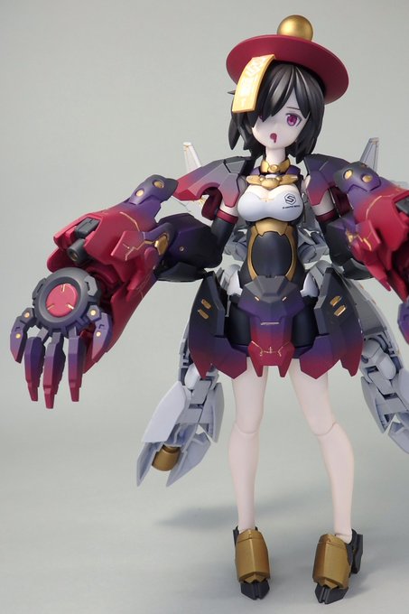 「セキラン」完成しました キョンシー系30MS、名前は紫藍草(キランソウ)と藍の赤紫染めからセキ(キ)ランになります。 肌のカラーBをそのままに他を暗色にすることで色白肌を狙ってみました 帽子の御札はランナータグを加工して製作しました ヨダレ表現ですよ〜(念の為) #30MS #30MS選抜オーディション