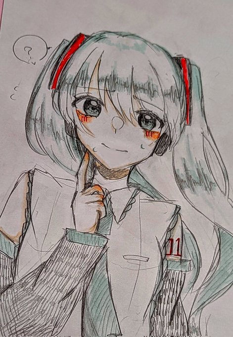 1 9 #イラスト #アナログ #初音ミク ミクちゃん 22/10/02 14:26