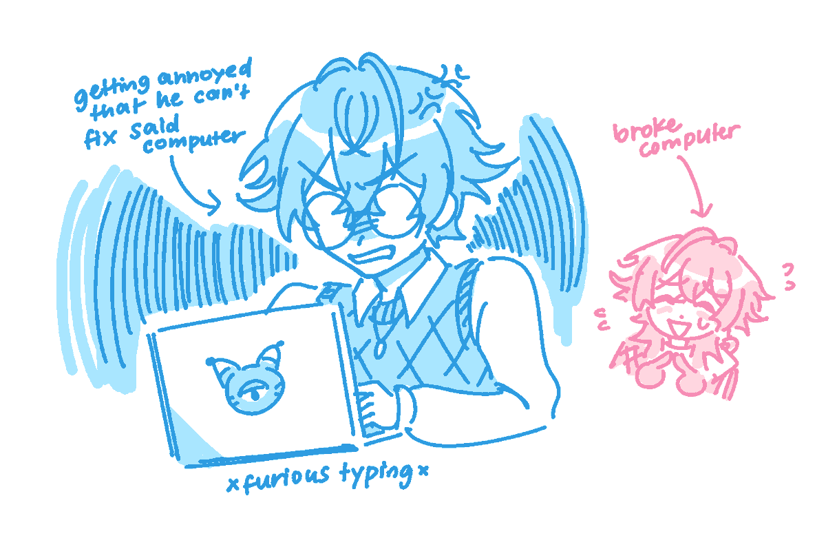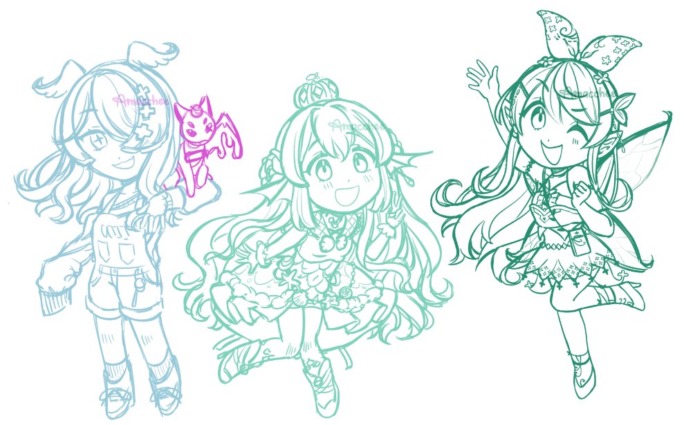 i couldn't help but finish the sketch for the first box :') i wonder who pomu's talking to...? (1/6 of @/127_sd_'s nijien oshi meme!) #PomuPaint