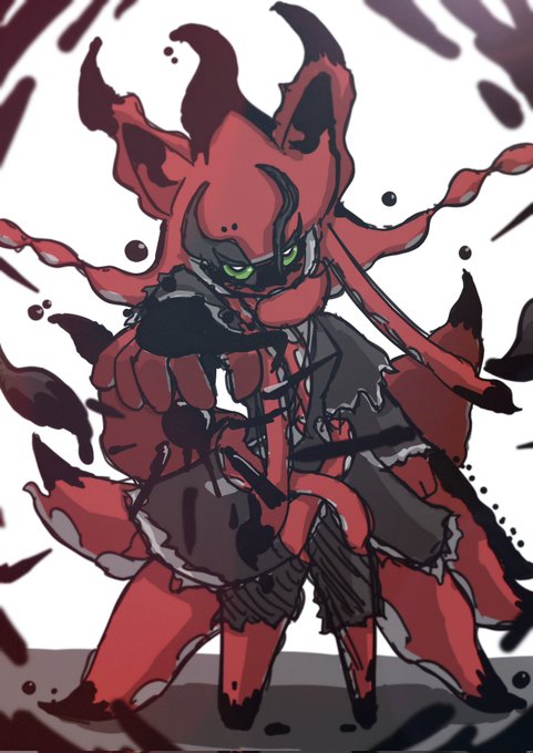 イカ+タコ+キツネ #絵 #イラスト #キャラデザ #オリキャラ #人外