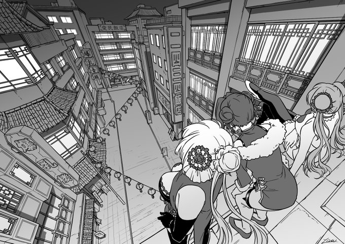 #絵ンジュ #ソシ絵ール #愛美術館 背景描くの楽しいけど構図のせいか中華の街とか選んだせいかめちゃ時間かかった~~でも満足した ばくにゅーおんど定期的に聞いてしまう