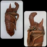 241 810 【ゾウカブトのさなぎのBAG】 「世界一体重が重いカブトムシ」として有名なゾウカブト。 モデルはアクティオンゾウカブトで、成虫の巨大さは言わずもがな、幼虫期間が3年と長く体重200gは昆虫界でも最大級。で、蛹もでっかくてかっこええ。 アマゾン川流域に分布。 ※背面がマグネットホックで開閉。 23/07/14 21:49