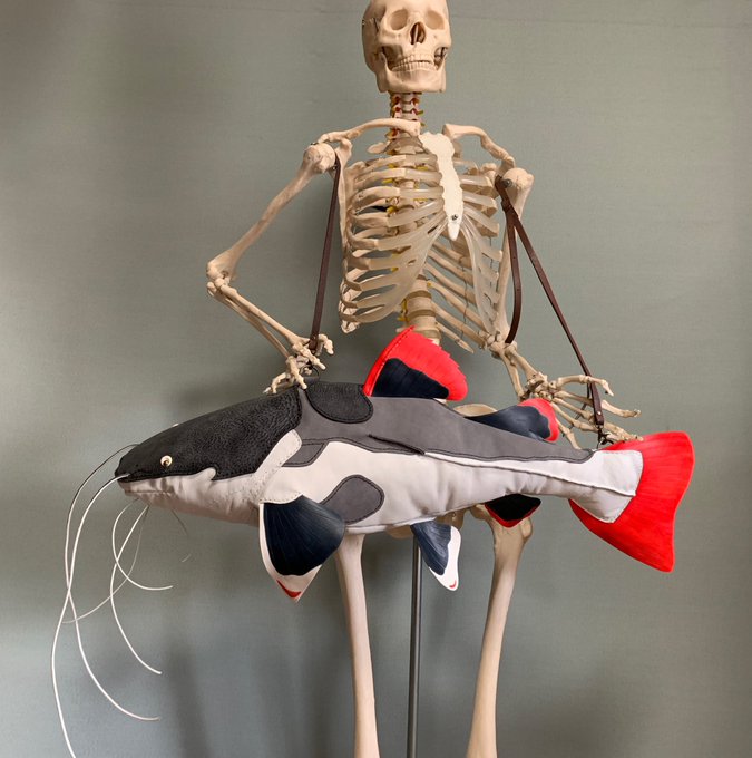 77 222 【レッドテールキャットのBAG】 redtail catfish 現地語でピララーラ アマゾン川全域に生息する大型ナマズで 黒白ボディと真っ赤な尾ビレが美しい。 成長スピードが早く、大きな口で自分と同じ大きさの獲物を丸呑みし、あっという間に巨大化する。 体長最大130㎝、体重40kgを超える。 ※ 作品は75㎝ 23/07/16 19:56