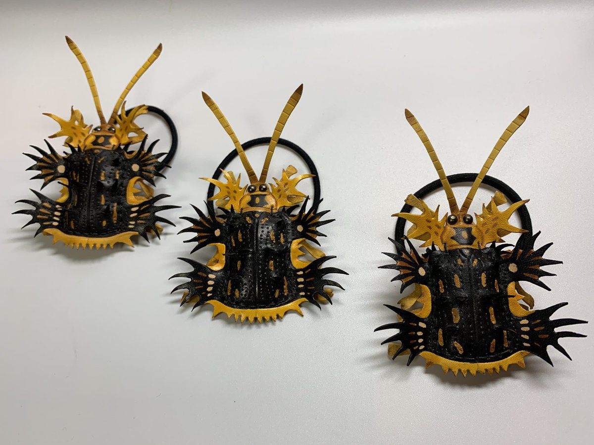 【ツシマヘリビロトゲハムシのヘアゴム】 Platypria melli Uhmann 日本では対馬にだけ生息するハムシ。 〈参考〉 「ハムシハンドブック」尾園暁著、文一総合出版(2014) 対捕食者向けのトゲの効果が存分に発揮されたものすごい使いづらいヘアゴム。ものすっごい使いづらいヘアゴムです(確認