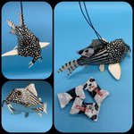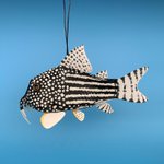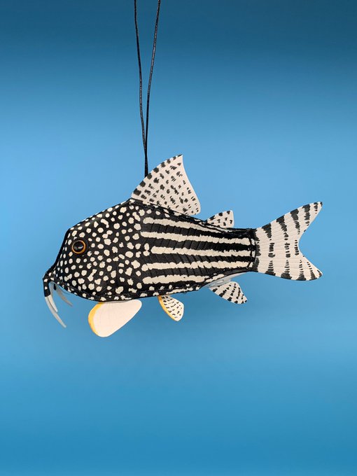 ※ タッセル=カーテン留めるやつ 作品は、焦茶の体に薄いオレンジ色の斑点が美しいオレンジスポットセルフィンプレコ。 よく売られている体長7-8cmの小さい個体がモデル。 頭でっかちで可愛いし、販売価格もお手頃過ぎるので安易に購入しがち。 でも!正しい知識と覚悟を持って終生飼養しましょう。