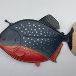 【ピラニア・ナッテリーのBAG】 Pygocentrus nattereri 南米北中部の淡水の川や湖に生息する肉食魚。体長20~30cm。 銀色の斑点と血が滲んだような赤い腹、顎からチラリと見える鋭い歯がカッコ良くてゾクゾクする。 基本は群れで行動し、臆病な性格だが、獲物の血の匂いで興奮すると激しく襲いかかる。